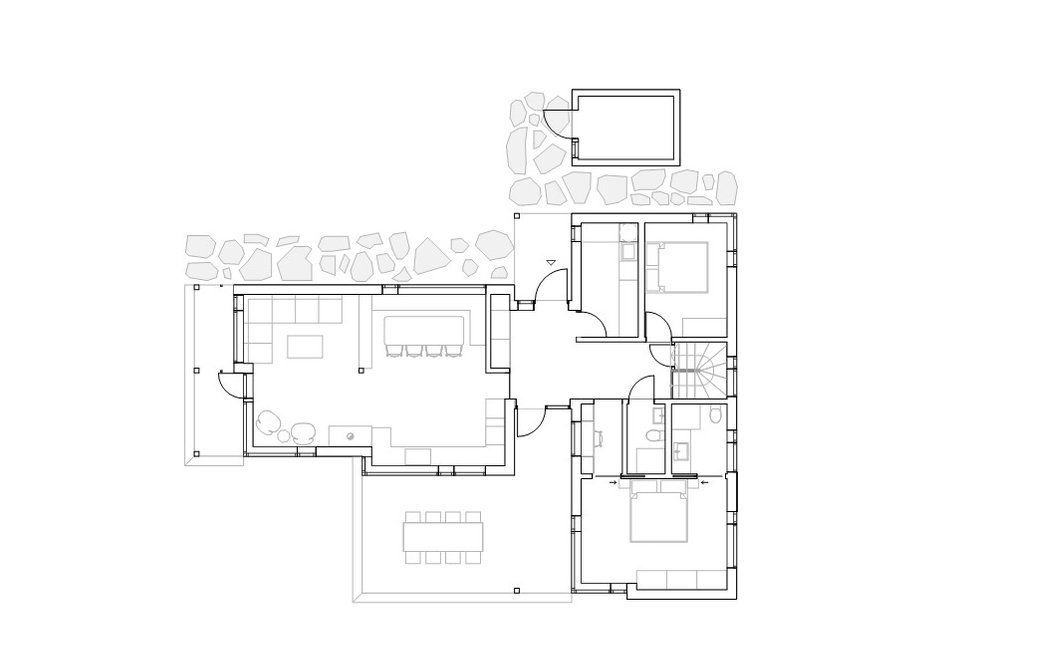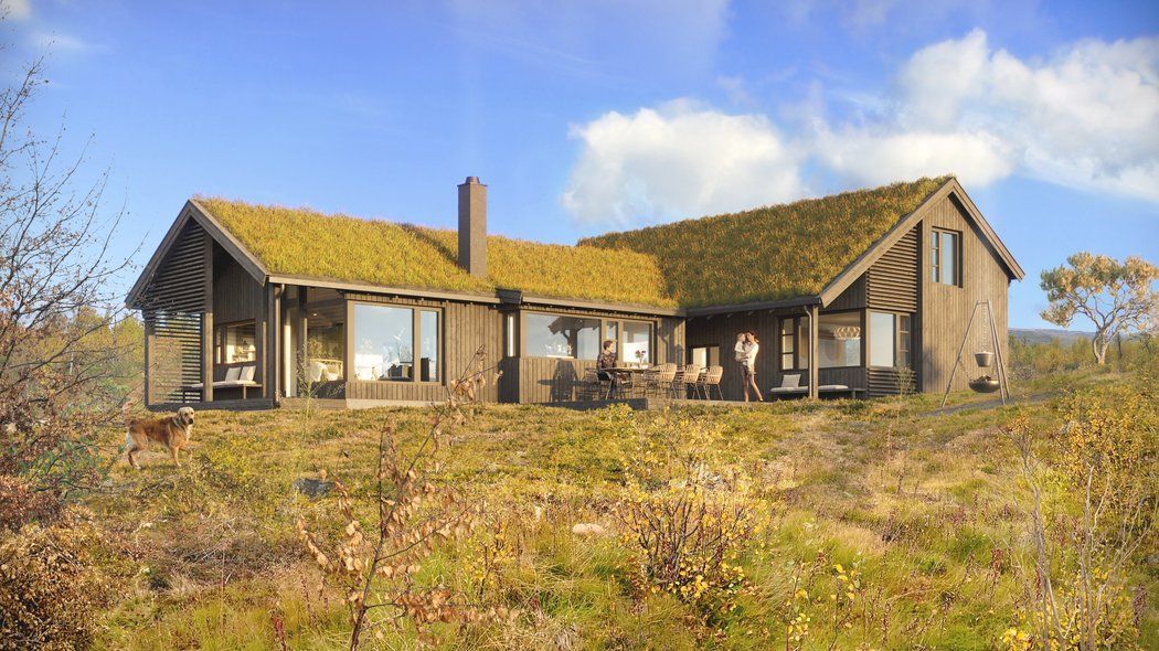 Hytta i vakre omgivelser på Dagali består av to volumer med saltak, som er koblet sammen med en romslig entré. Det ene volumet består av soveromsavdeling med hemseetasje, mens det andre består av oppholdsareal. Fasadene har store glassflater mot naturen, og mørk tømmermannspanel. Hytta legges ut for salg om kort tid.